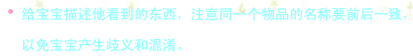 借助寶寶熟悉的活動(dòng)和物品,向他提問(wèn)題或者下指令,比如指著小貓問(wèn)“這是什么”,指著蘋果下指令“把蘋果給媽媽”,注意提問(wèn)或下指令不要超出他的能力范圍。