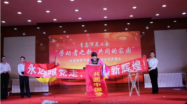 金風(fēng)送爽,萬里河山披錦繡;不忘初心,豪情萬丈頌祖國。為慶祝新中國成立70周年華誕,在全市職工中營造出歡樂祥和的節(jié)日氛圍,青島市總工會“勞動者之歌 共同的家園”文藝演出團走進萊西市家政服務(wù)協(xié)會進行專場文藝慰問演出,12月29號下午1點30分,在水集街道辦事處禮堂隆重開幕。
