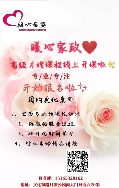 暖心家政于2013年經(jīng)青島市工商局批準成立,具備獨立法人資格。是一家集母嬰護理,育嬰早教,老年護理為一體的綜合性服務機構,常年開設高級月嫂 育嬰師,面點師、茶藝師,催乳師,養(yǎng)老護理等方面的課程培訓,培養(yǎng)社會需要的各方面專業(yè)人才。