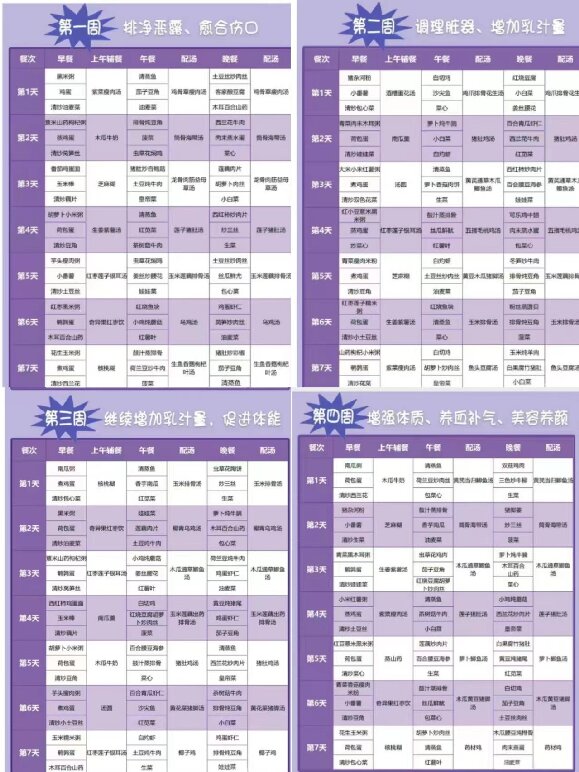 回家之后,順產和剖腹產的媽媽在飲食上基本沒什么區(qū)別,大家可以參考下面這份食譜。